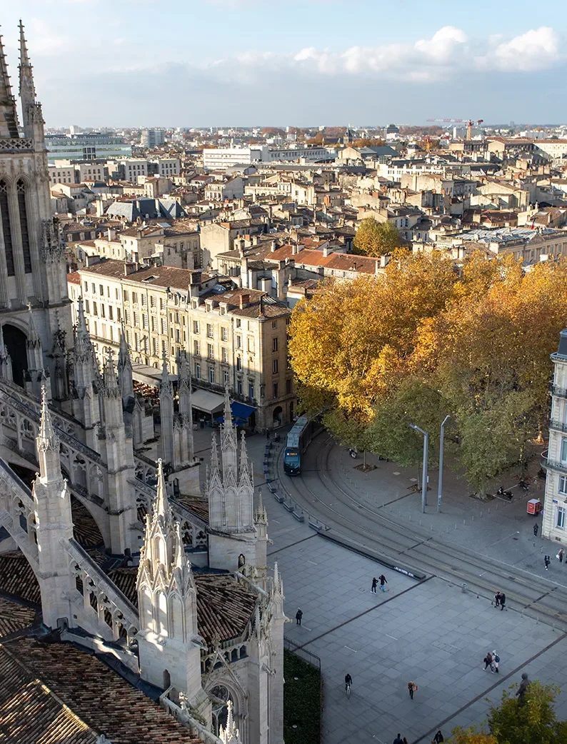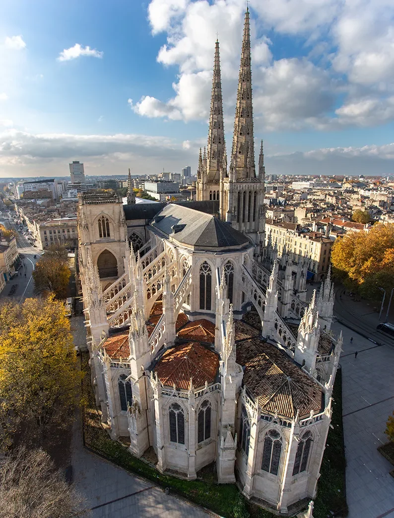 Pour visiter Bordeaux de manière authentique, perdez-vous dans les ruelles médiévales du vieux Bordeaux. La cathédrale Saint-André, édifice gothique du XIe siècle et sa tour Pey-Berland offrent un panorama époustouflant sur la ville. Du haut de ses 231 marches, admirez l'ensemble harmonieux des toits bordelais et la Garonne qui y serpente.