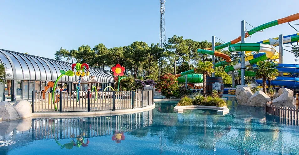 Le Camping Club Médoc Plage 4 étoiles à Montalivet-les-Bains, niché au cœur d'une pinède à 1 km de l'océan, constitue une base parfaite. Ce camping 4 étoiles proche de Bordeaux offre un parc aquatique exceptionnel avec piscines chauffées et toboggans, tout en permettant d'accéder facilement aux châteaux du Médoc et à la métropole bordelaise, située à environ une heure de route.